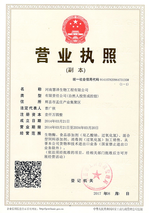 - 鄭州慧澤生化科技有限公司是一家充滿(mǎn)朝氣的科研生產(chǎn)型高技術(shù)企業(yè)。目前公司業(yè)務(wù)主要集中在精細(xì)化工、食品化工和微生物制劑行業(yè)。公司現(xiàn)已建成鄭州、焦作、新鄉(xiāng)三個(gè)生產(chǎn)基地,其中河南新鄉(xiāng)輝縣孟莊生產(chǎn)基地占地70畝,總投資達(dá)1.2億。現(xiàn)擁有年產(chǎn)100000噸過(guò)氧化氫消毒劑,年產(chǎn)8000噸的過(guò)氧化鈣和年產(chǎn)5000噸的雙乙酸鈉的生產(chǎn)線(xiàn),同時(shí)開(kāi)設(shè)有生產(chǎn)總量5000噸的枯草芽孢桿菌、地衣芽孢桿菌等微生態(tài)制劑發(fā)酵生產(chǎn)車(chē)間。公司始終堅(jiān)持“以人為本,科技興企,品質(zhì)優(yōu)良,用戶(hù)滿(mǎn)意”的經(jīng)營(yíng)宗旨。為客戶(hù)創(chuàng)造價(jià)值更多的價(jià)值...